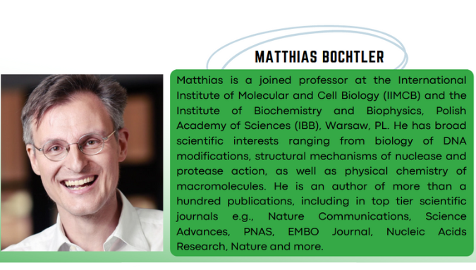 Matthias is a joined professor at the International Institute of Molecular and Cell Biology (IIMCB) and the Institute of Biochemistry and Biophysics, Polish Academy of Sciences (IBB), Warsaw, PL. He has broad interests and a great passion towards science.