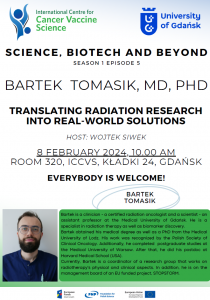 Bartosz Tomasik, MD, PhD will deliver a talk entitled: “Translating Radiation Research into Real-World Solutions.”
