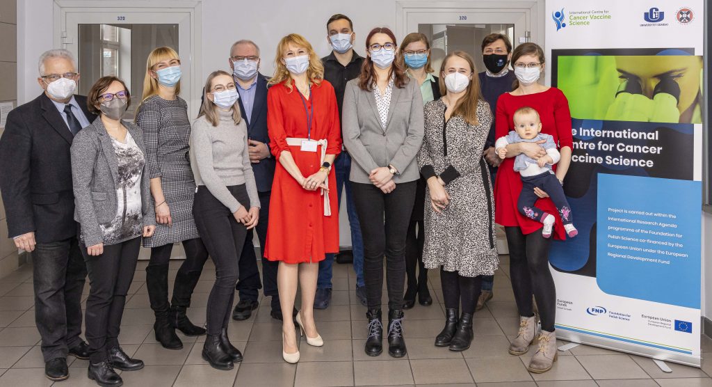 On the photo from left site: prof. Janusz Siebert (Department of Family Medicine, MUG), dr Adriana Schumacher (Department of Pharmacology, MUG), dr Hanna Zielińska (Department of Medical Immunology, MUG), mgr Justyna Sakowska (Department of Medical Immunology, MUG), dr Jan Spodnik (Department of Anatomy and Neurobiology, MUG), prof. Natalia Marek- Trzonkowska (ICCVS, UG and Department of Family Medicine, MUG), Łukasz Arcimowicz, MSc (ICCVS, UG), Karolina Piekarska, MSc (Department of Family Medicine, MUG), dr Małgorzata Kurkowiak (ICCVS, UG), dr Iwona Pelikant Małecka (Division of Medical Laboratory Diagnostics, MUG), prof. Piotr Trzonkowski (Department of Medical Immunology, MUG), dr Zuzanna Urban- Wójciuk with the youngest member of ICCVS team- daughter Ula (ICCVS, UG). There are four coauthors lacking on the photo: prof. Ted Hupp (ICCVS, UG), prof. Ewa Słomińska (Department of Biochemistry, MUG), Bogusław Tymoniuk, MSc (Department of Immunology and Allergy, UM), and prof. Alicja Renkielska (Department of Plastic Surgery, MUG).